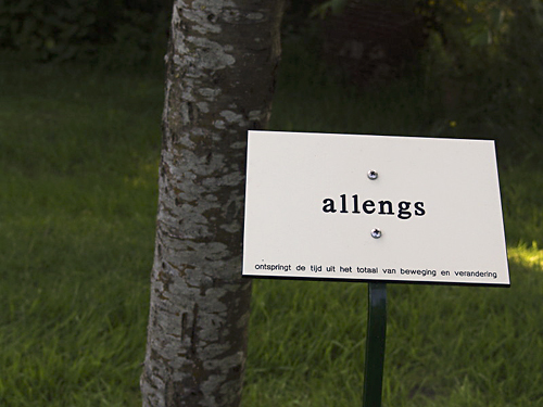 De tekst op de bordjes verwijst naar de tijd en het tijdsbegrip zoals wij het beleven.