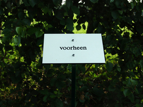 In de tuin staan bordjes, zoals ze in botanische tuinen worden gebruikt.